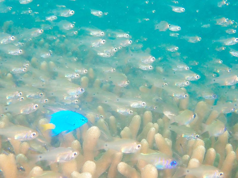 湾の奥にしか居ないシリキルリスズメダイ、ウスモモテンジクダイ、イトヒキテンジクダイ