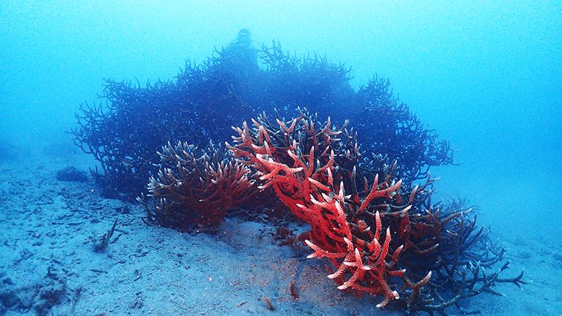 このサンゴは15年くらいまえに、台風で倒れたサンゴ。