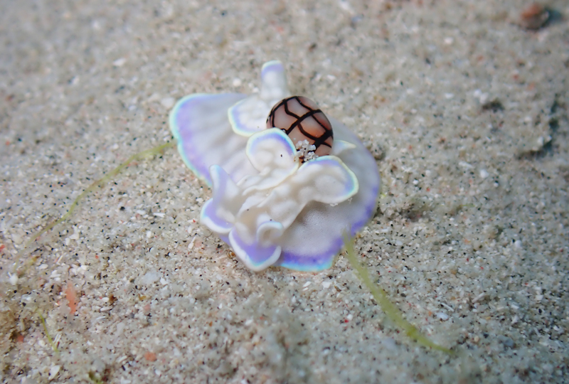 貝を背負った珍しいウミウシ