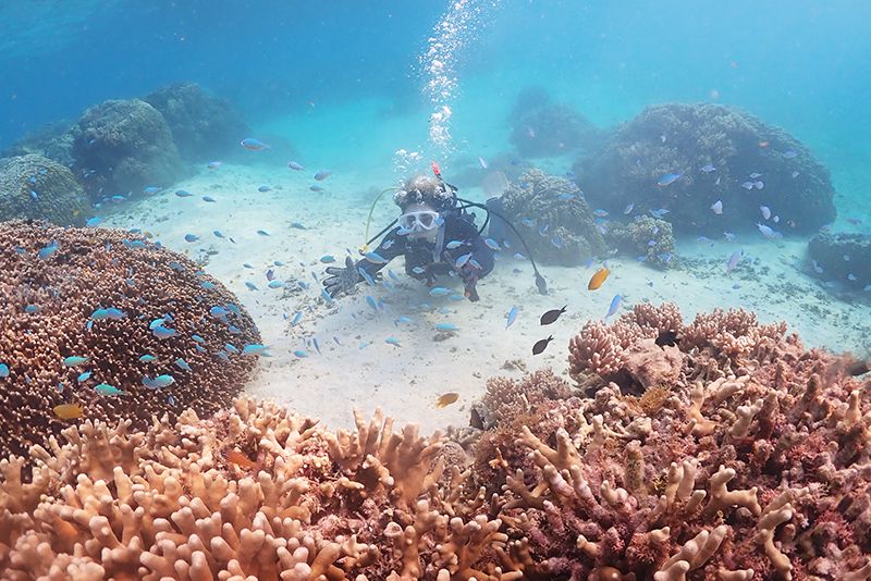 (体験ダイビングをしているのが奄美で美味しいパン屋さんである北斗パンのパン職人。僕の友達なのだ。)