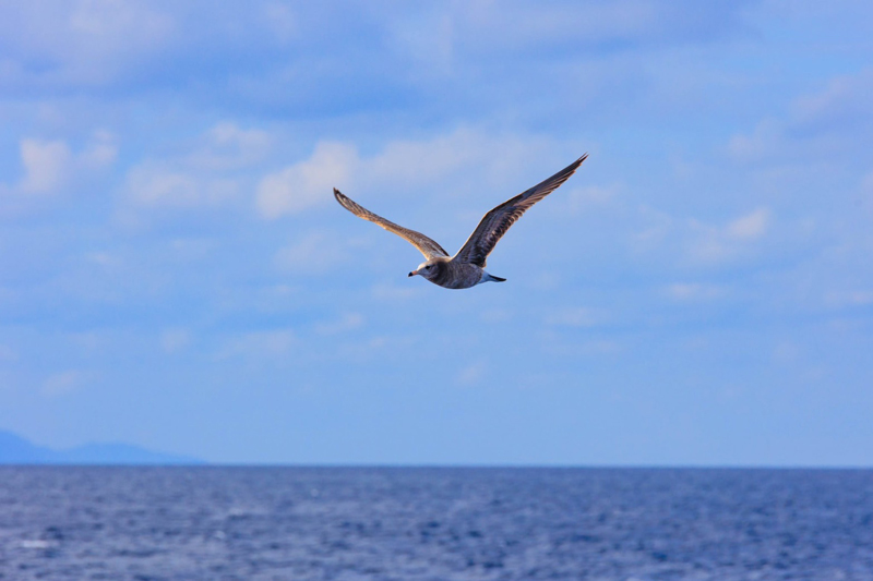 また飛んだと思うと船の周りを飛び、水面スレスレまで降下してきました。