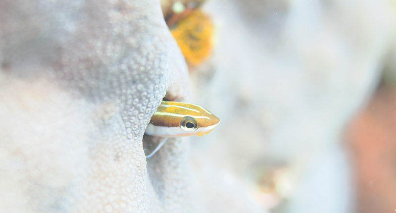 ひょっこり顔を出してるテンクロスジギンポ