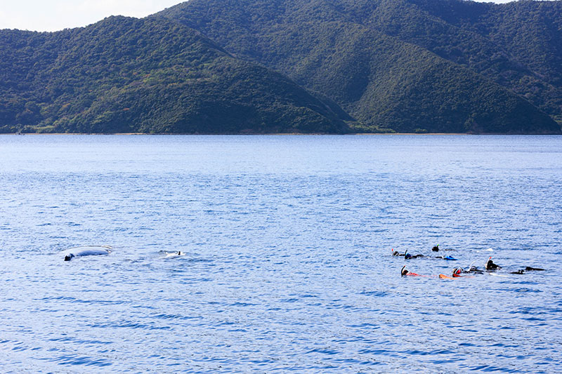 クジラを追いかけて一緒に泳ぐのではなく、クジラを驚かさず、怖がらせず、刺激せず、近づいて観察するという事を理解しておいてください。