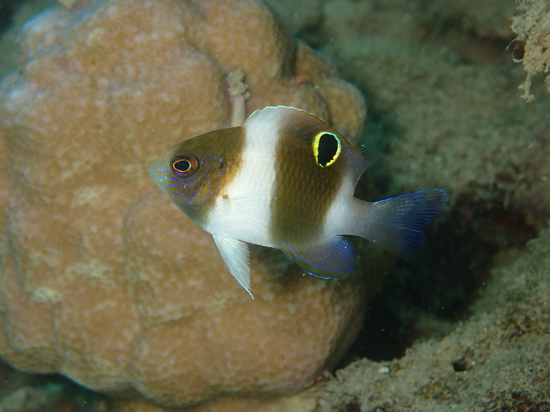 流れの無い穏やかな湾内でよく見るダンダラスズメダイ