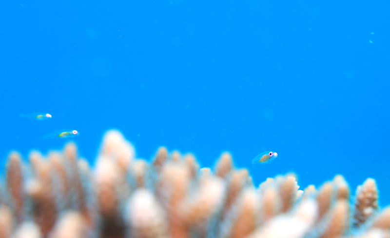 ミドリイシにアカメハゼが沢山乗ってました♪