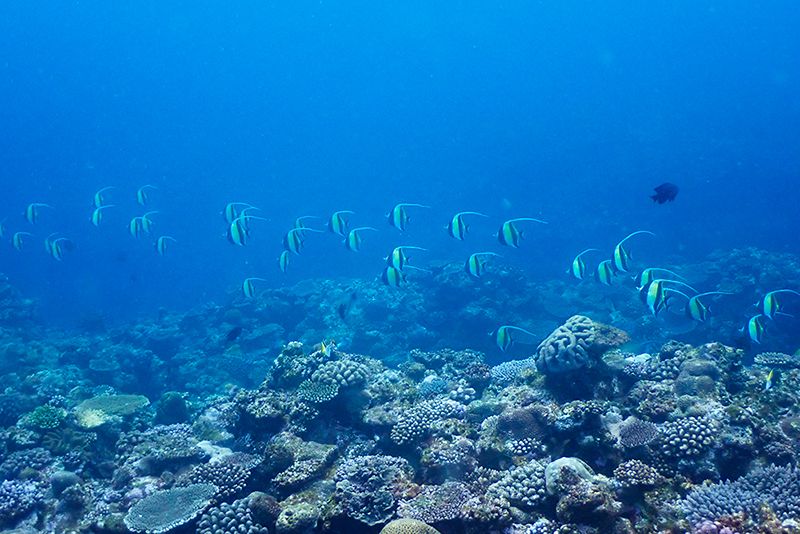 カスミチョウチョウウオの群れやイソマグロと出会ったり、