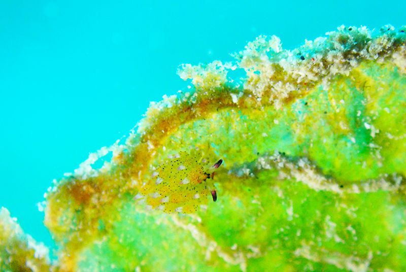 クサイロモウミウシ 海をいれると素晴らしい色合いの写真になります。
