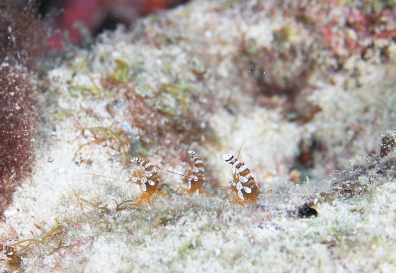 イソギンチャクの麓に住んでいるエビ三兄弟
