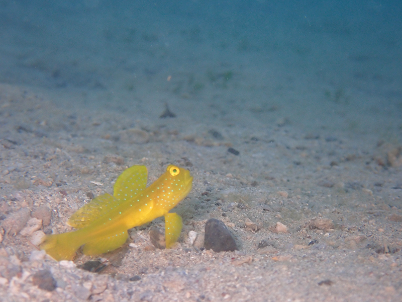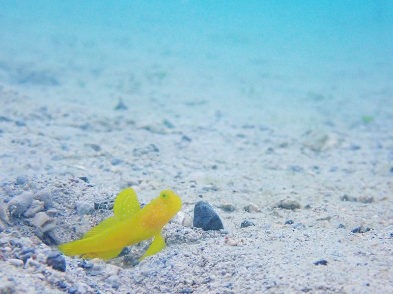 黄色い体に水色の斑点がきれいなギンガハゼ